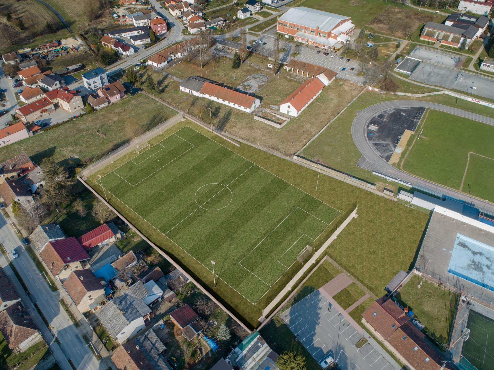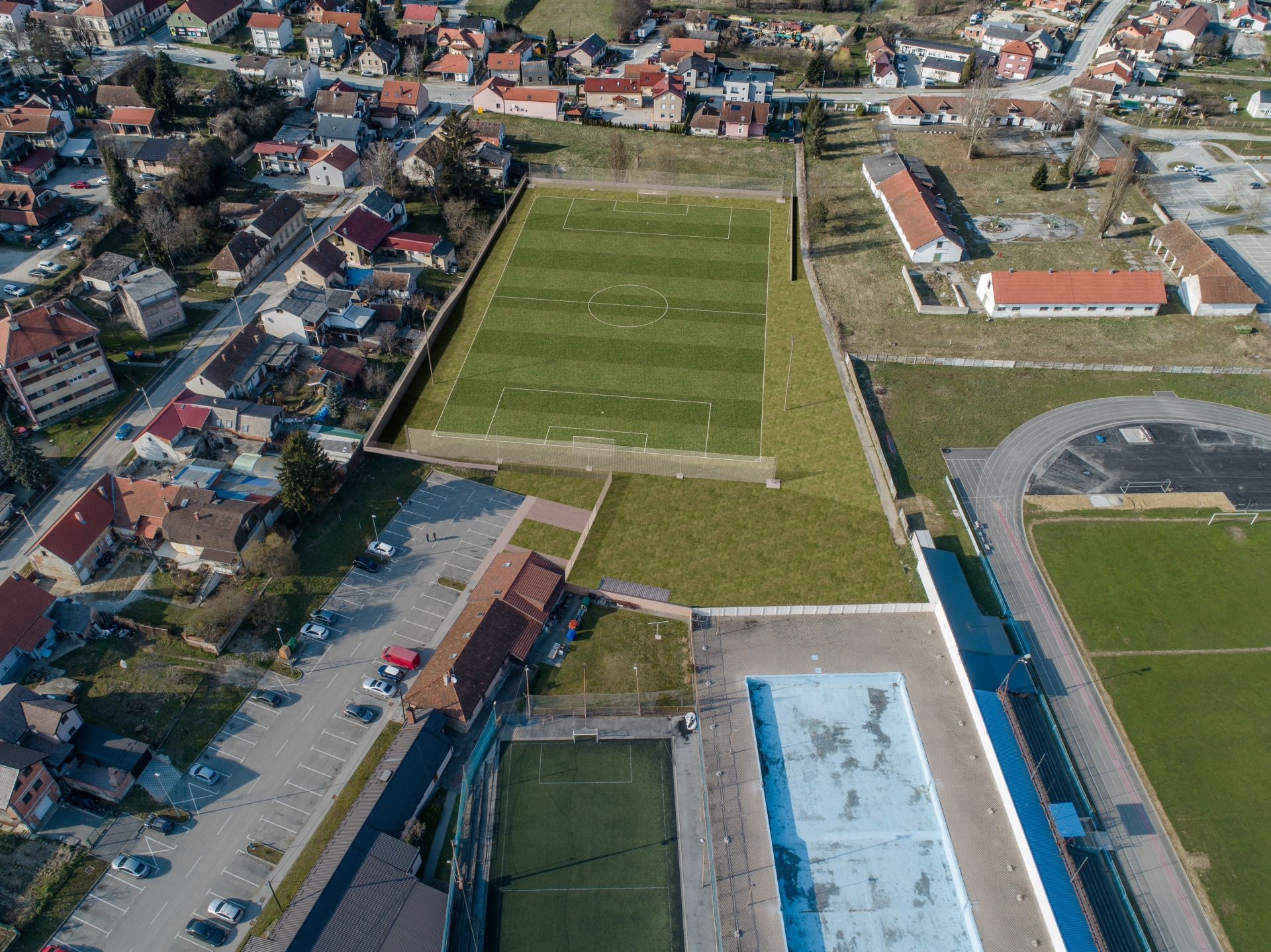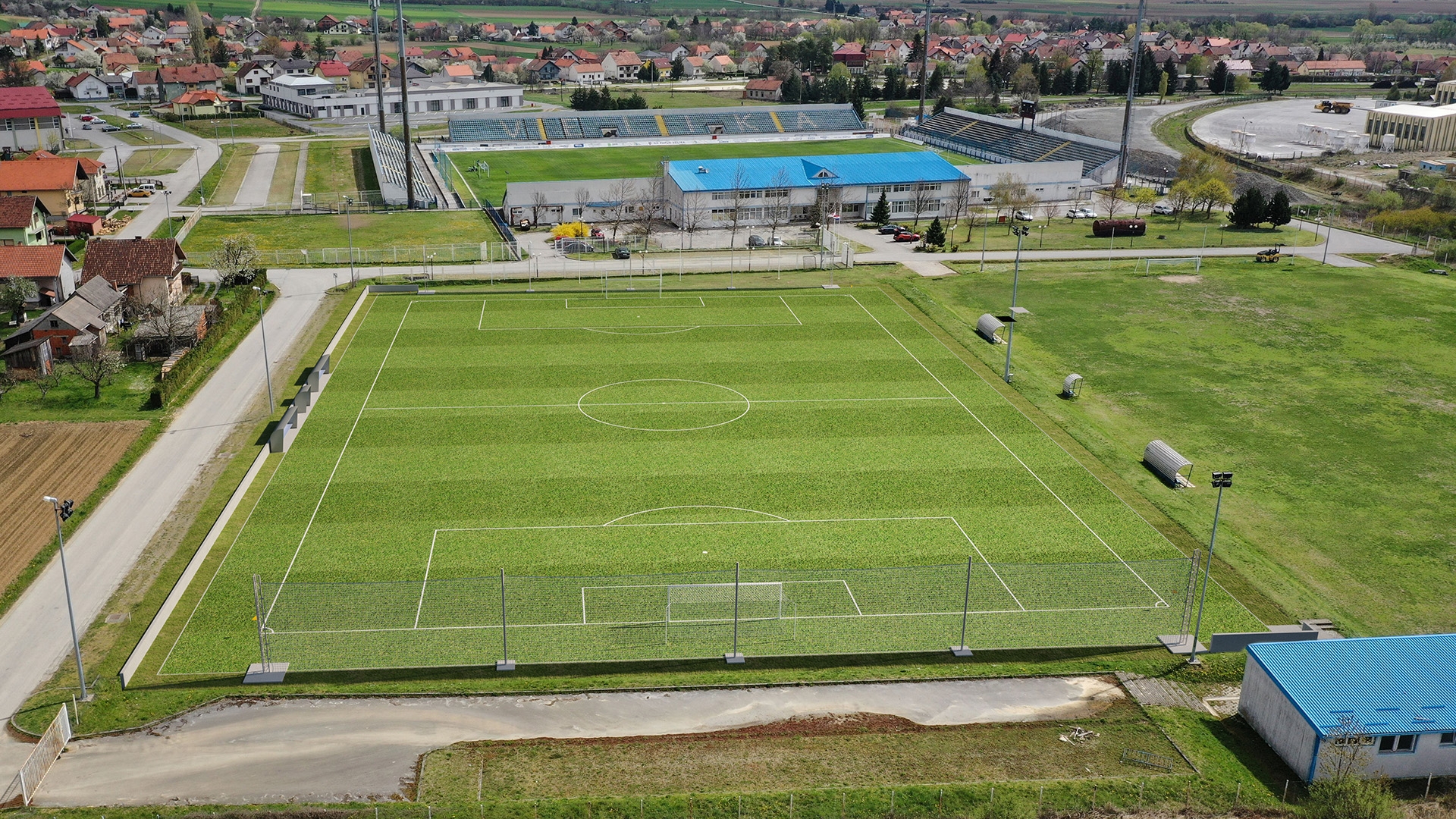 Sukladno zahtjevu investitora potrebno je izgraditi velikonogometno igralište dimenzija 68 m x 105 m na prirodnoj travi koje je smješteno unutar predmetnog zahvata istočno od rekonstruirane zgrade.
