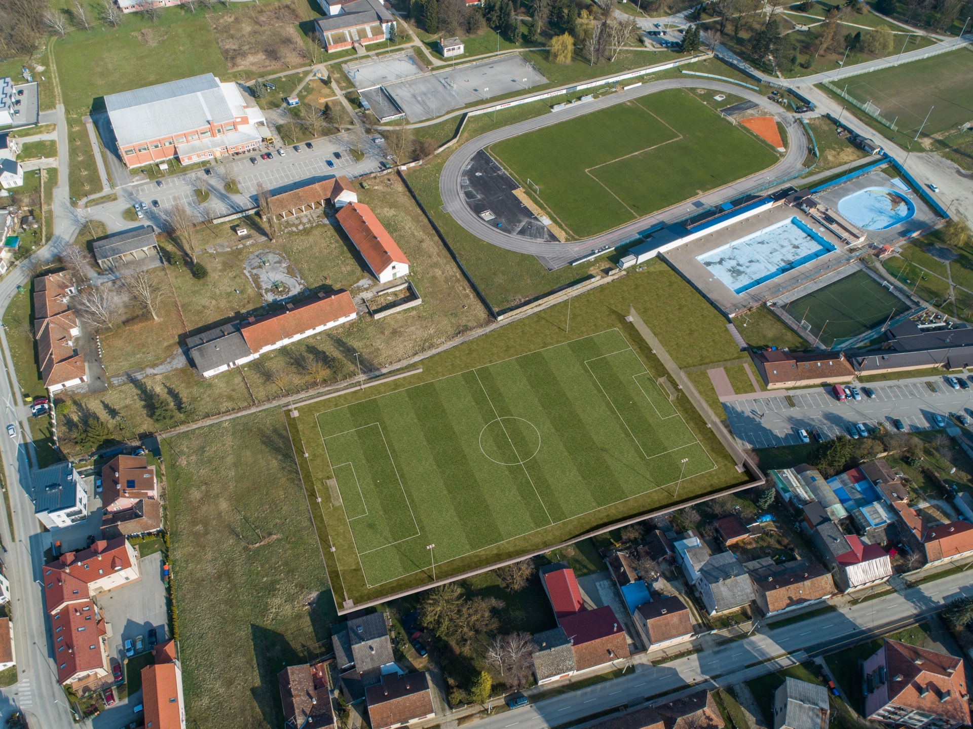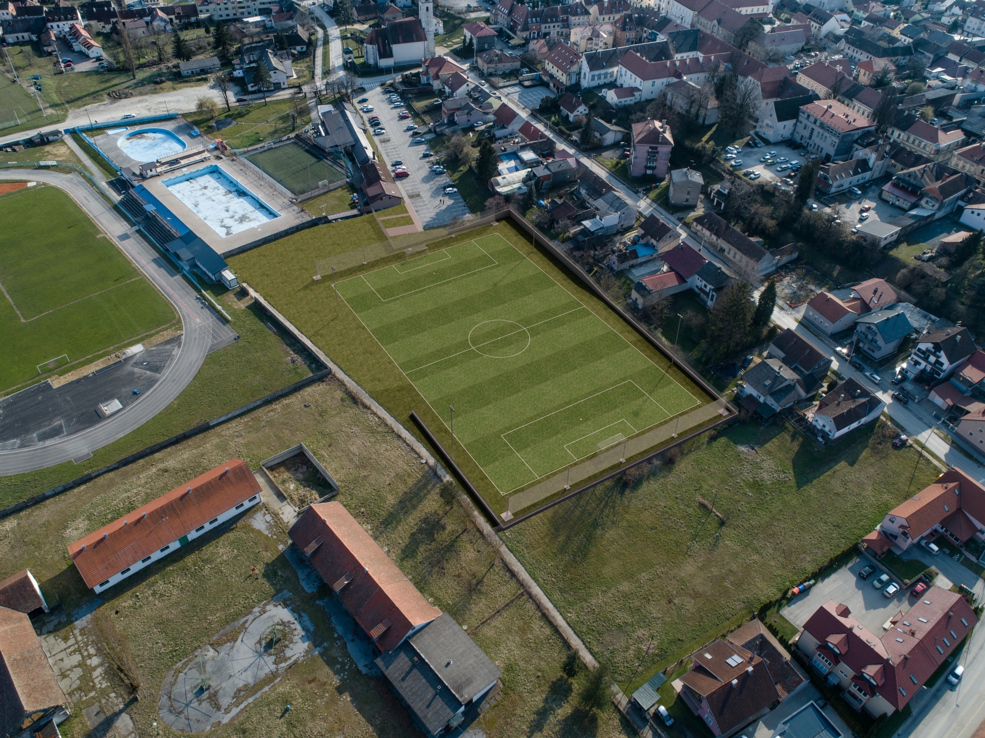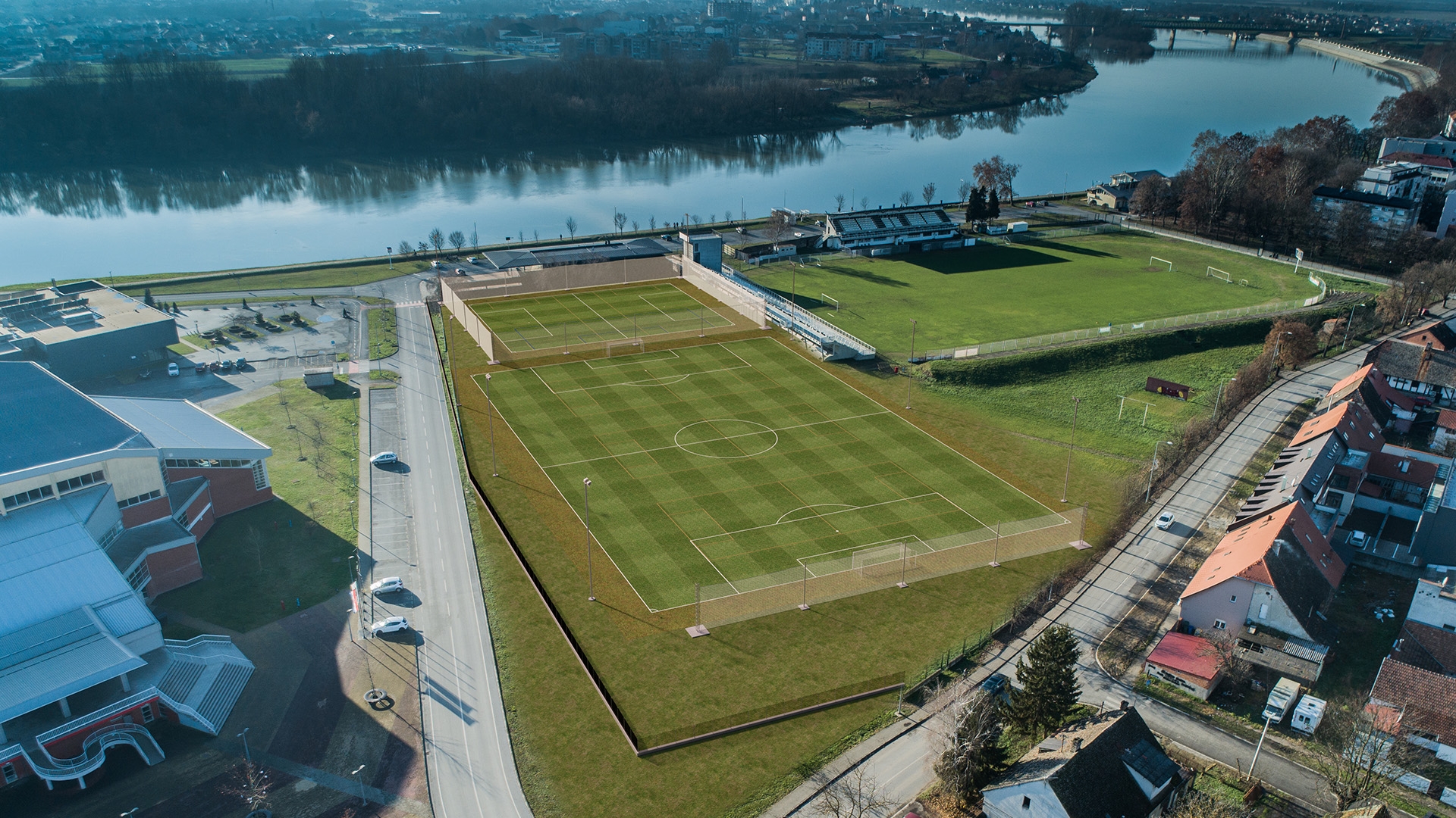 Sukladno zahtjevu investitora potrebno je izgraditi velikonogometno igralište dimenzija 68 m x 105 m na prirodnoj travi koje je smješteno unutar predmetnog zahvata istočno od rekonstruirane zgrade.