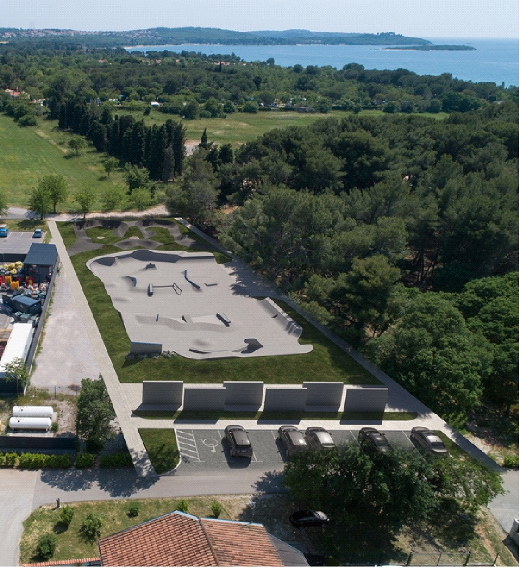 Izgradnja sportskog igrališta – skate parka na Puljskoj cesti, na k.č.br. 780/211 K.O. Fažana koje je predviđeno za javno korištenje s tribinama (s pomoćnim i pratećim sadržajima) i prometnim površinama (kolni prilaz, parkiralište i pješačke površine).